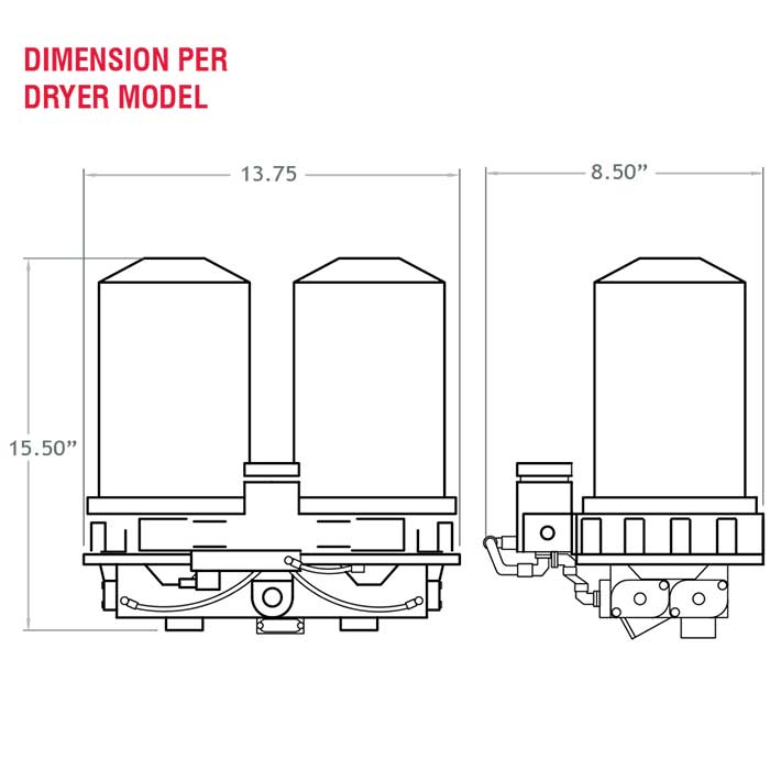 FS-Curtis’ DA Series provides bone dry air so your paint jobs come out perfect every time. When combined with pre-filtratiion and post-filtration, you have the ideal solution for eliminating air contaminants that cause issues with paint spraying, whether water or solvent borne. DA Series offers compressed air users a simple and effective nononsense approach to dry compressed air. Great for use with any type of compressor including piston, scroll, rotary vane or rotary screw technologies. The ability to function with inlet temperatures to 150°F makes it ideal for use with tank mounted reciprocating air compressors that lack an aftercooler.