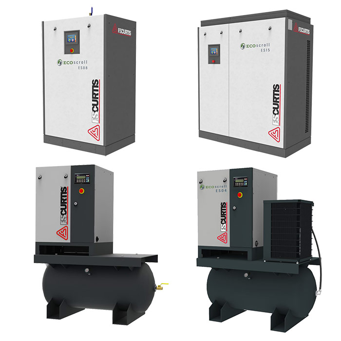 FS-Curtis ECO Scroll oil-free air compressors are ISO 8573-1 CLASS 0 certified compressors which are energy efficient, easy to operate and maintain, quiet and compact. FS-Curtis ECO Scroll oil-free scroll compressors provide 100% oil-free air for critical applications in industries such as electronics, pharmaceutical, hospitals, printing, automotive, universities, dental applications, water aeration, food and beverage. Benefits & Features: