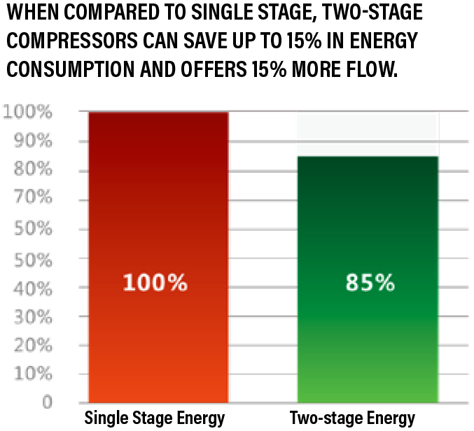 Saves 10-15% of energy compared to single-stage compressors